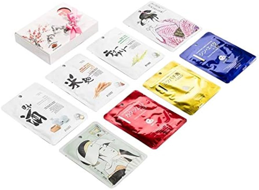 Pearl & Cherry Blossoms Facial Essence Mask 1pc EGF & Lithospermum Youthful Radiance Mask 1pc Rejuvenating Mask Gold & Bee Venom Facial Mask 1pc Collagen & Q10 Essence Mask 1pc Snail Extract & EGF Facial Mask 1pc Placenta & Platinum Facial Mask 1pc Tea Tree Essence Mask 1pc Sake Essence Mask 1pc