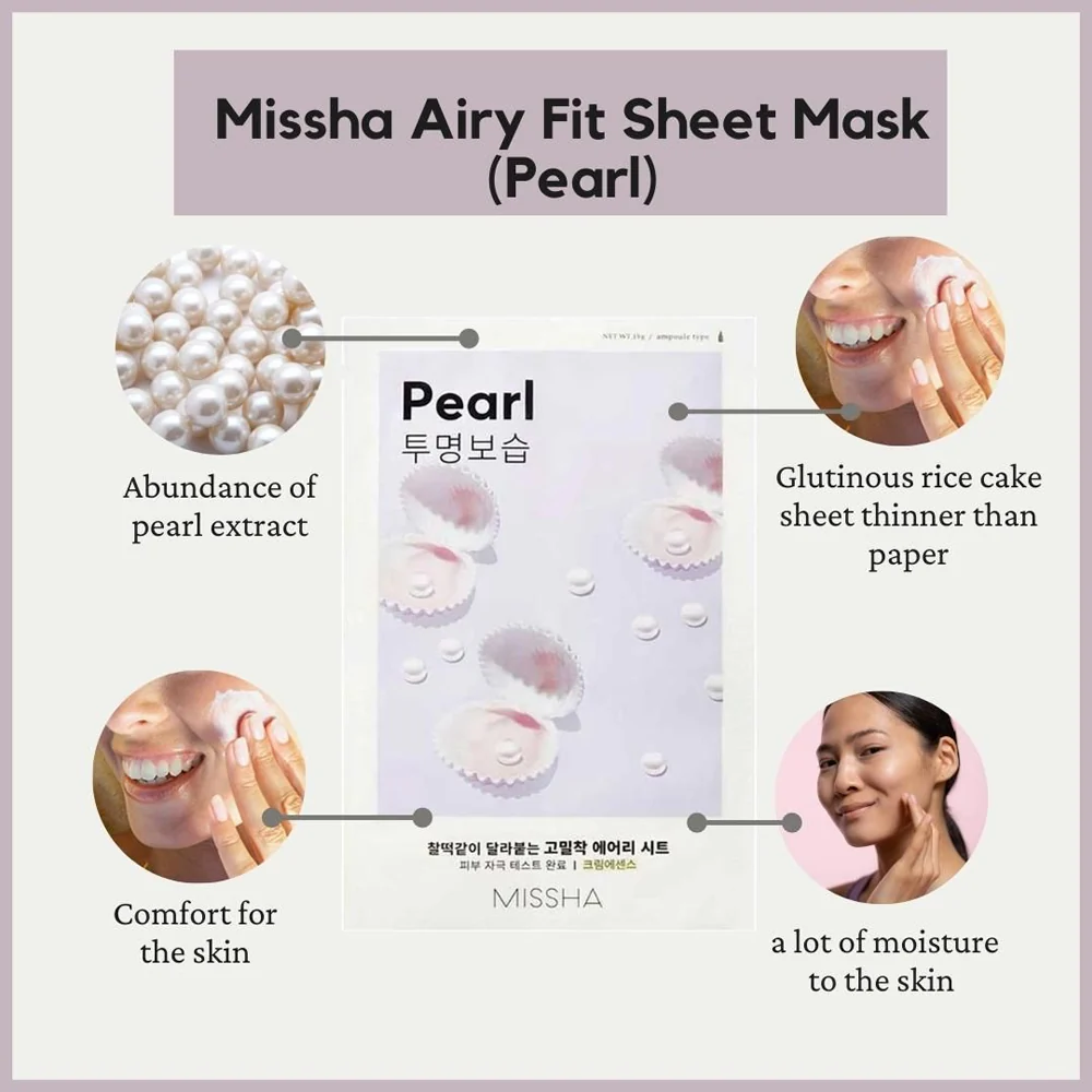 Το Φύλλο μάσκας με μαργαριτάρι διαθέτει ένα εξαιρετικά λεπτό φύλλο εμπνευσμένο από ριζόχαρτο, το οποίο είναι το μισό λεπτό από το κανονικό χαρτί. Επιπλέον, η μάσκα φύλλων είναι σε θέση να εξασφαλίσει μέγιστη πρόσφυση. Πράγματι, πηγαίνει στο πρόσωπό σαν δεύτερο δέρμα, και δημιουργεί μια αίσθηση άνεσης και επιτρέπει στο δέρμα να απορροφήσει όσο το δυνατόν περισσότερο προϊόν. Καθώς περιβάλλει το δέρμα με πολύτιμα μέταλλα το φύλλο μάσκας με μαργαριτάρι αποκαθιστά και αναζωογονεί την επιδερμίδα.Τέλος , δίνει το επιθυμητό Glass Skin!