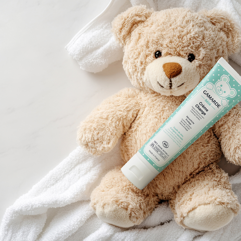 Η Κρέμα Αλλαγής Πάνας για Μωρά Bio της Gamarde συνδυάζει τρία ενεργά συστατικά φυσικής και βιολογικής προέλευσης, που δρουν συνεργιστικά για να προστατεύουν και να ανακουφίζουν το ευαίσθητο δέρμα του μωρού. Το βιολογικό κερί μέλισσας θρέφει και ενισχύει τον προστατευτικό φραγμό της επιδερμίδας, δημιουργώντας ένα λεπτό φιλμ που προφυλάσσει από την υγρασία και την τριβή της πάνας. Το εκχύλισμα άνθους καλέντουλας καταπραΰνει και μαλακώνει το δέρμα, συμβάλλοντας στη μείωση της ερυθρότητας και των ερεθισμών, ενώ το βιολογικό έλαιο argan προσφέρει πλούσια ενυδάτωση και αναπληρώνει τα απαραίτητα λιπίδια, διατηρώντας την επιδερμίδα ελαστική και απαλή. Χάρη σε αυτή τη φυσική, υποαλλεργική σύνθεση, η κρέμα προστατεύει αποτελεσματικά την περιοχή της πάνας και προσφέρει καθημερινή άνεση και φροντίδα με απόλυτη ασφάλεια.