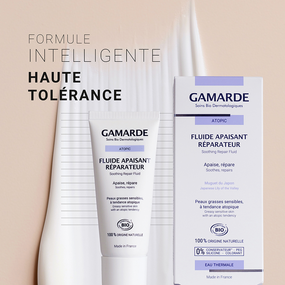 Το Καταπραϋντικό Επανορθωτικό Fluid της Gamarde συνδυάζει θερμικό νερό Gamarde, βιολογική Aloe Vera και βιολογικό έλαιο βερίκοκου, δημιουργώντας έναν βιομιμητικό συνδυασμό που μιμείται τη φυσική λειτουργία του δέρματος. Το Eau de Gamarde, πλούσιο σε θείο και ιχνοστοιχεία, καταπραΰνει άμεσα τους ερεθισμούς και μειώνει την αίσθηση τραβήγματος, χαρίζοντας άνεση στα πιο αντιδραστικά δέρματα. Το εκχύλισμα Aloe Vera BIO ενυδατώνει σε βάθος, μαλακώνει και διατηρεί την υγρασία της επιδερμίδας, ενισχύοντας την ελαστικότητα και τη φυσική της άμυνα. Τέλος, το φυτικό έλαιο βερίκοκου BIO θρέφει, επανορθώνει και προσφέρει μεταξένια απαλότητα, ενώ συμβάλλει στην αναδόμηση του δερματικού φραγμού και στην επαναφορά της ισορροπίας του δέρματος. Χάρη στον συνδυασμό αυτών των δραστικών συστατικών, η επιδερμίδα γίνεται πιο ανθεκτική, λιγότερο ευαίσθητη και ορατά πιο ήρεμη, με φυσική, υγιή όψη.